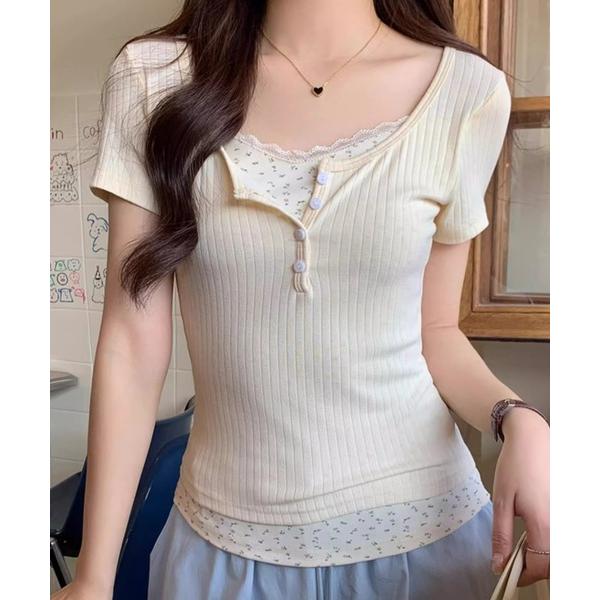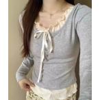 tシャツ レース フェイクレイヤード ヘンリーネック Tシャツ レディース