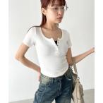 tシャツ アーミーリブ ヘンリーネックTシャツ レディース