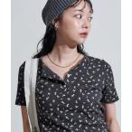 tシャツ 花柄 針抜き フライス ヘンリーネックTシャツ レディース