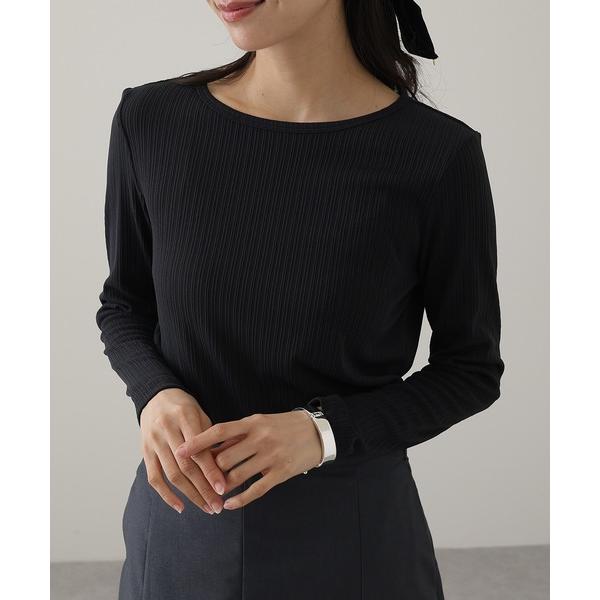 tシャツ 大人の上品シルエット。シャーリング長袖Tシャツ レディース