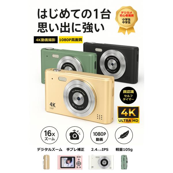 デジタルカメラ 4K 4800万画素 高画質 キッズカメラ 高画質 修学旅行 子供向け トイカメラ 子供 デジカメ 2.4インチ大画面 軽量 コンパクト学生 初心者