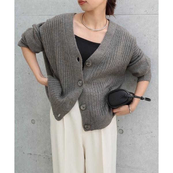カーディガン リブ編みボックスシルエット長袖ニットカーディガン レディース