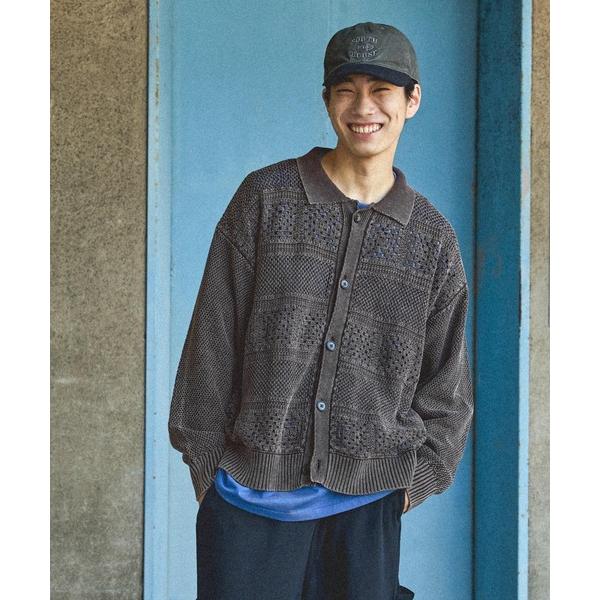 カーディガン クロシェ切り替えニットカーディガン メンズ