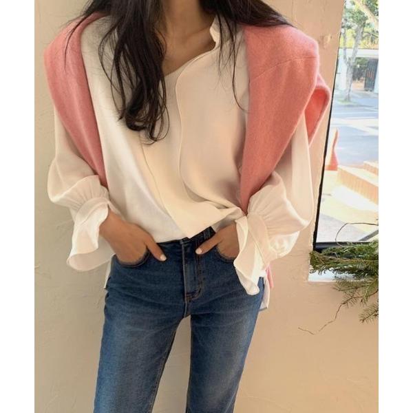 ブラウス シャツ Vネック スキッパーブラウス フリル袖 レディース