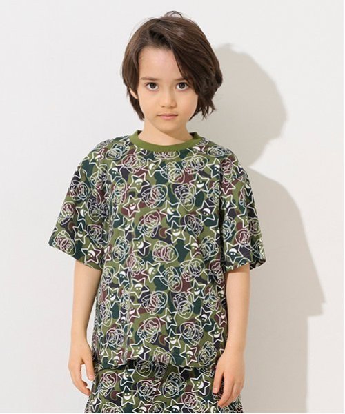 【SALE/50%OFF】XLARGE KIDS ファニーゴリラ&キラッキー カモ柄半袖Tシャツ ナルミヤオンライン トップス カットソー・Tシャツ グリーン