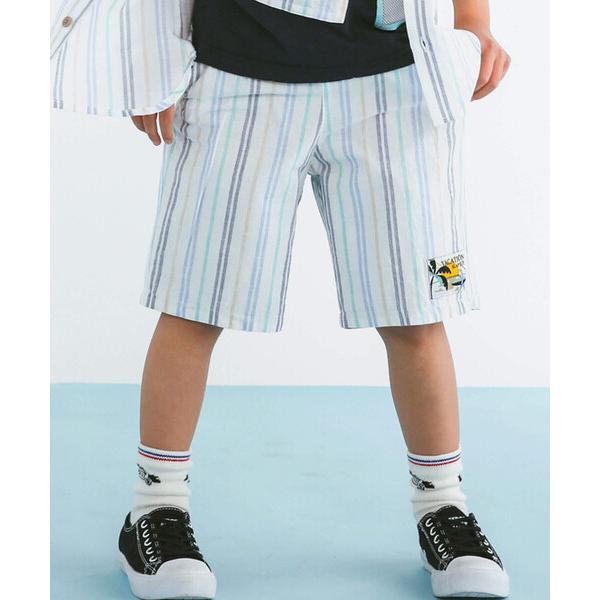 パンツ 「お揃い」無地ストライプ柄リバーシブルハーフパンツ(80~130cm) キッズ 子供服 男の子