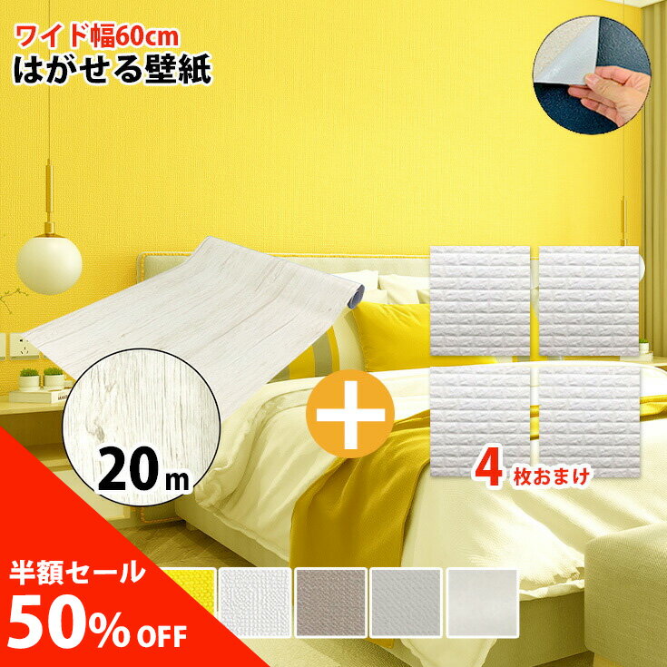\50%OFF 半額!/壁紙の上から貼れる シート はがせる 壁紙 シール 3d レンガ 立体 北欧 クッションレンガ 白 リメイクシート おしゃれ グレー 木目調 diy 黄色 イエロー 子供部屋 トイレ 簡単 張り替え 自分で 剥がせる クッション壁紙 防水 クッションシート 壁 20m+4枚■