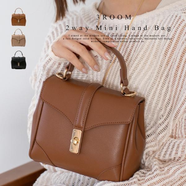 2WAY ミニハンドバッグ高級感のあるフェイクレザーを使用した今どきコンパクトなショルダーバッグ。ライトゴールドの金具が上品なアクセントになっており、普段使いからセレモニー...