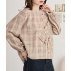 ブラウス シャツ くしゅくしゅコサージュのチェック柄ブラウス レディース