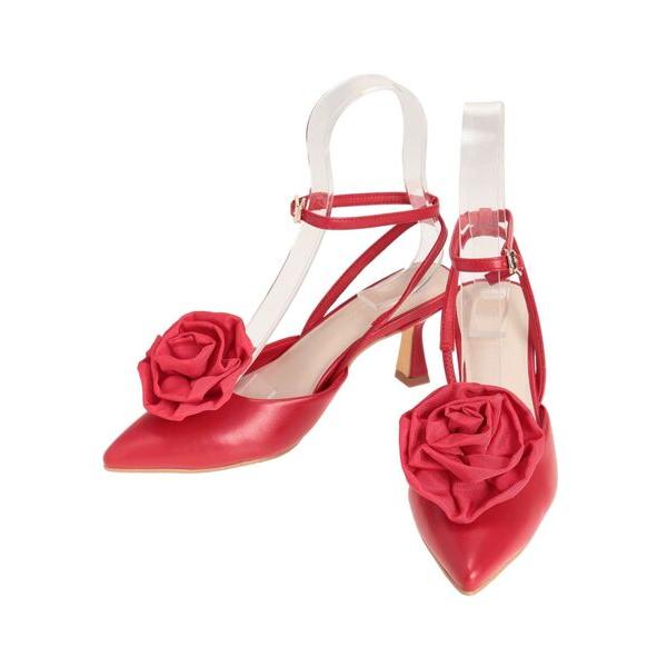 パンプス コサージュミュールパンプス