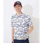 tシャツ LUXEAKMPLUS(リュクスエイケイエムプラス)ゴルフ 総柄ロゴ ロゴ刺繍 半袖モックネックTシャツ 半袖Tシャツ メンズ レディース