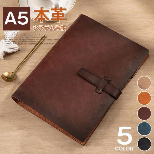 本革 システム手帳 A5 6穴 高級 リング手帳 リフィル ノート レザーカバー 手帳カバー