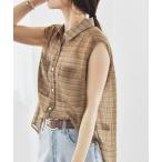 ブラウス シャツ quaranciel:「手洗い可能」シアー チェック ノースリーブ シャツ レディース