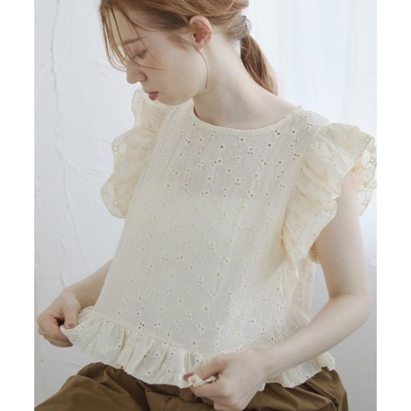 ブラウス シャツ カットワークフリルペプラムブラウス レディース