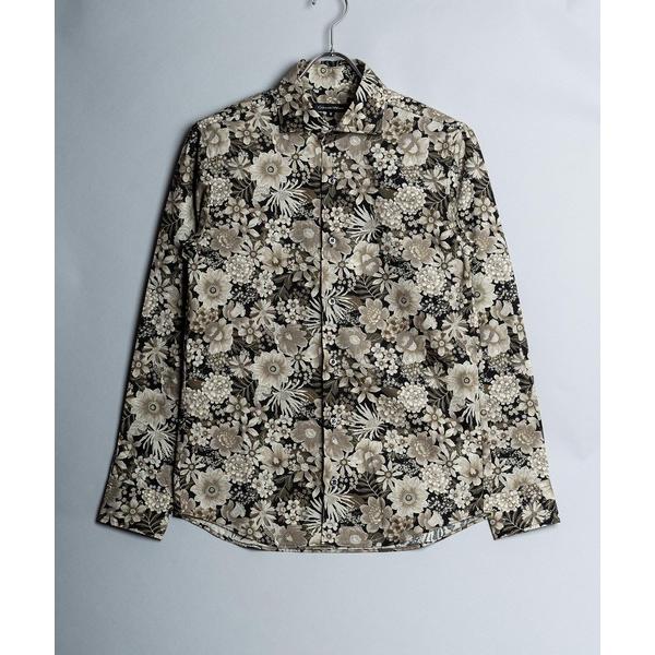 シャツ 日本製 フラワー ペイズリー プリント ホリゾンタル カラー シャツ(GW) メンズ