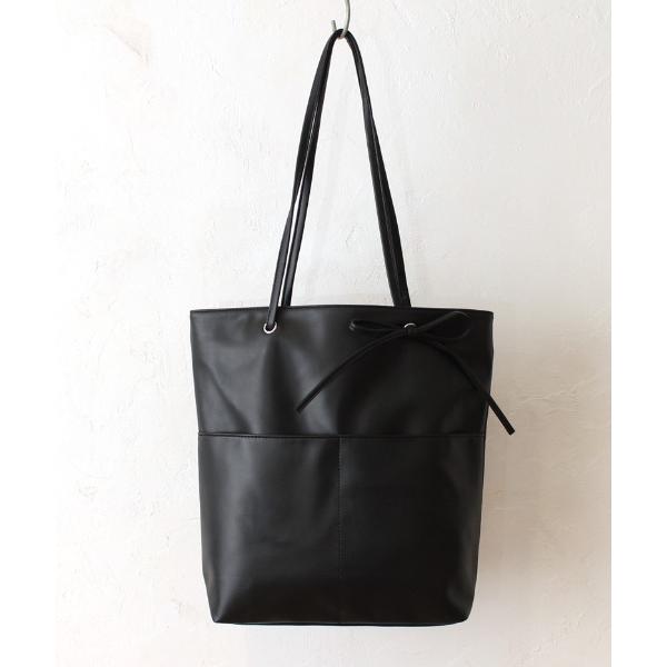 トートバッグ 「25SS/リニューアルして登場!」フェイクレザーリボン付きA4トート レディース