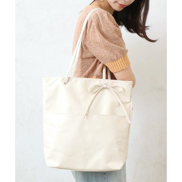 トートバッグ 「25SS/リニューアルして登場!」フェイクレザーリボン付きA4トート レディース