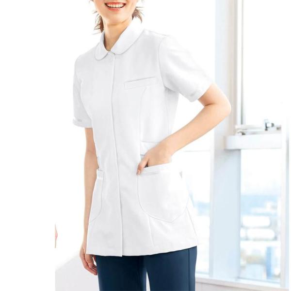【今なら68%OFF】ナースウェア 白衣 帯電防止 医療 看護 介護 歯科 バックラチネ 丸衿配色ジャケット_TB