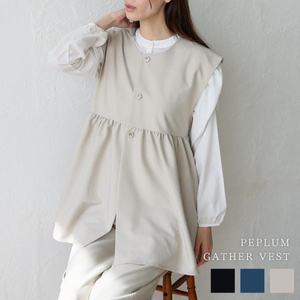 ペプラムギャザーベストペプラムなシルエットがトレンドライクなベスト。程よくハリ感があり柔らかな肌触りのツイル生地を使用。シワになりにくく、お手入れ楽ちんなのが嬉しいポ...