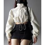 ブルゾン アウター 「 裾が絞れる2WAY / 2color 」ダブルジップスタンドカラーナイロンショートブルゾン レディース