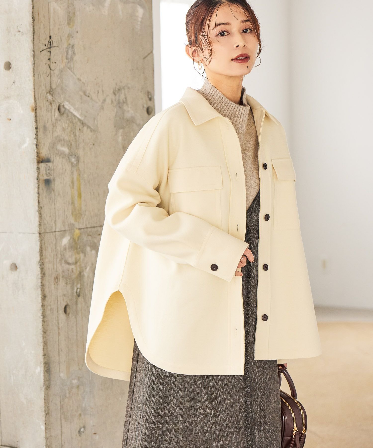 【SALE/50%OFF】studio CLIP ウールライクニットシャツジャケット スタディオクリップ ジャケット・アウター ブルゾン・ジャンパー グレー ホワイト