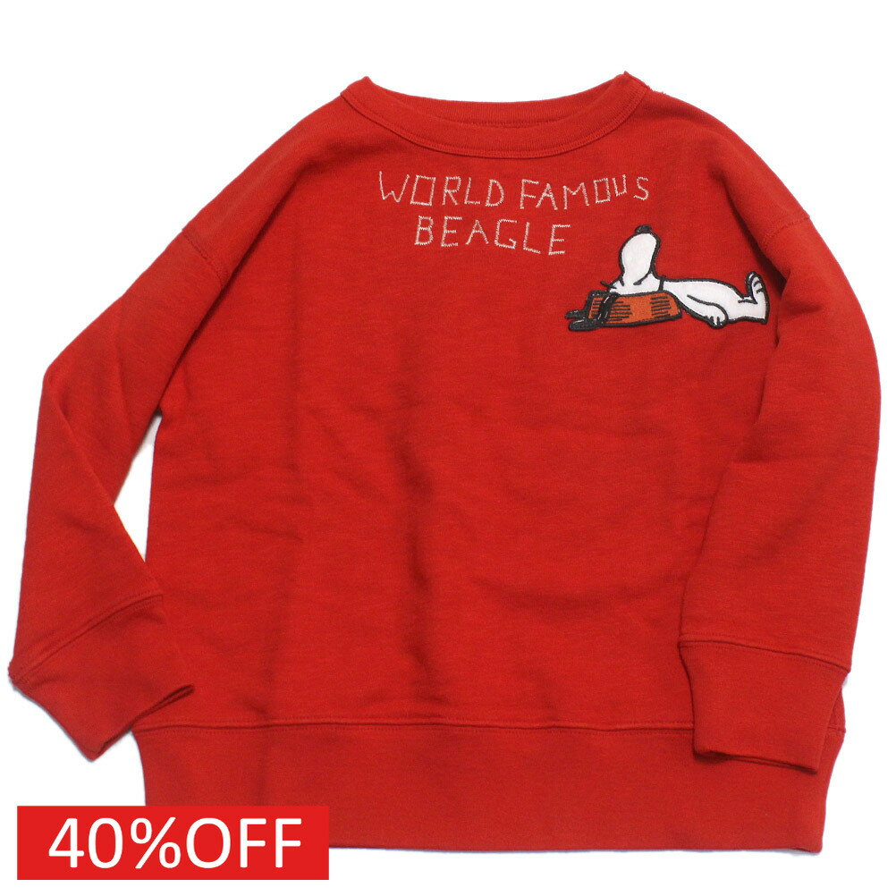 【子ども服/デニムダンガリー/スヌーピーコラボ/DENIM DUNGAREE/ジュニア服】 セール 【50%OFF】 ウラケ SNOOPY SLEEP スウェット 5R赤