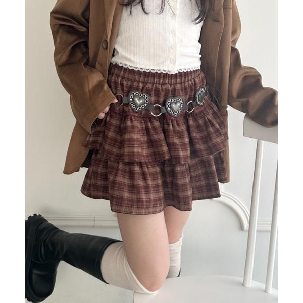 スカート フリルチェックミニスカート