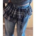 スカート チェックフリルラップベルト