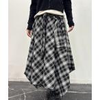 スカート 「mily bilet」旬のレイヤード風スタイルが楽しめる!シャツ巻き風チェック柄スカート(ロング丈)