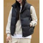tシャツ スタンドカラー ダブルポケット ナイロン ダウン ベスト レディース