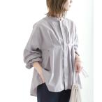 シャツワンピース 「Fizz/フィズ」 綿麻混スタンドカラーギャザーシャツワンピース