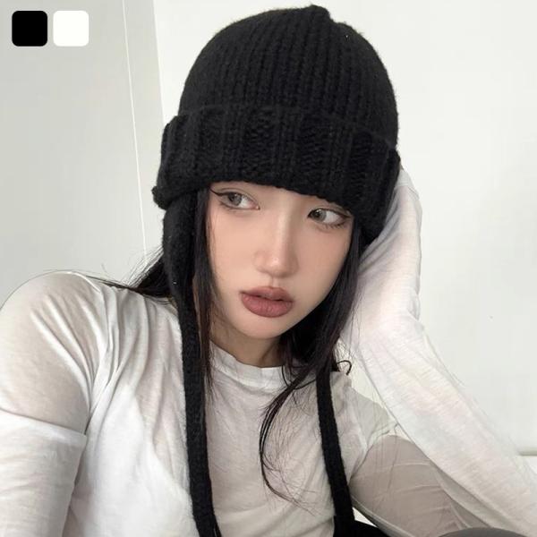 ニット帽 レディース 耳当て 帽子 ニットフライトキャップ 暖かい イヤー カバー フラップ 防寒 寒さ対策 折り返し ローゲージ 黒 白 秋冬