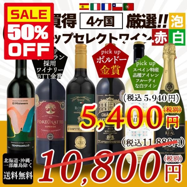 超PayPay祭 50%OFF ワイン ワインセット お買い得 ショップセレクト 赤白泡セット 赤ワイン 白ワイン スパークリングワイン 6本 辛口 爆買 EV