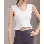 スポーツブラ ソリッドカラー フリル袖 クロップド ペプラム ハーフトップ