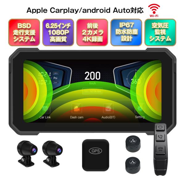 ドライブレコーダー ドラレコ バイク ナビ バイク用ナビ バイク用ドライブレコーダー ポイント2倍 スマートモニター 4K 防水 防塵 安全走行支援 CarPlay 爆買