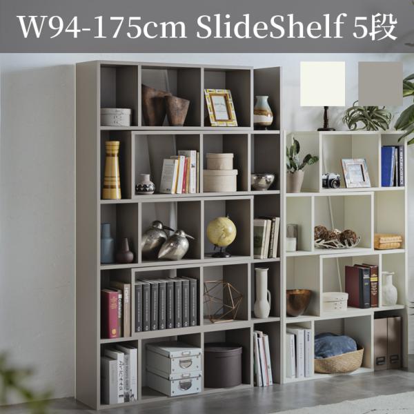 シェルフ スライドシェルフ 本棚 書棚 可動式 リビング収納 スライド式 伸縮 幅95 175 収納 おしゃれ ラック 棚 木製 オープンラック 北欧 ブックシェルフ