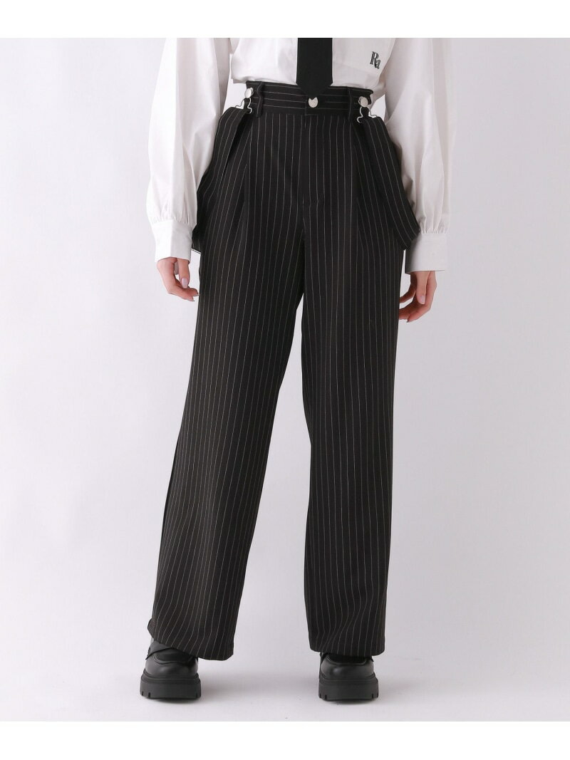 【SALE/50%OFF】ストライプサスペンダーパンツ repipi armario レピピアルマリオ パンツ スラックス・ドレスパンツ ブラック グレー【RBA_E】[Rakuten Fashion]