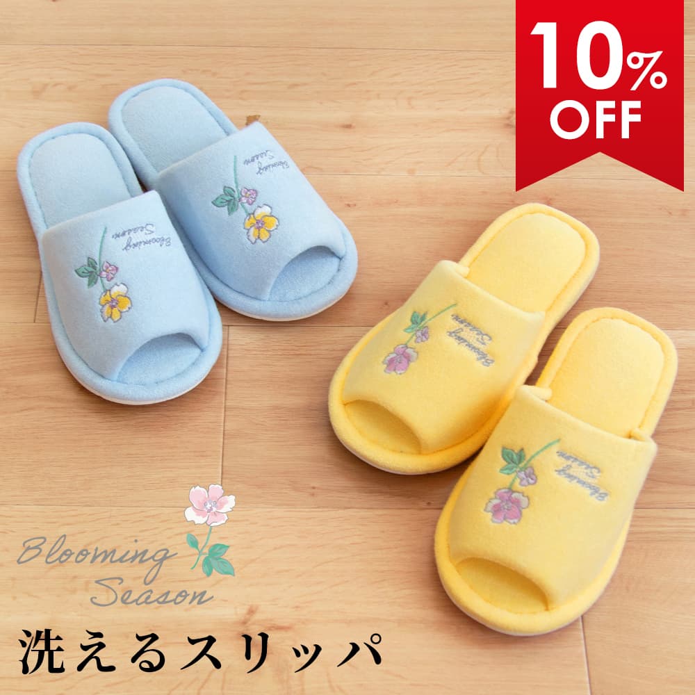 【50%OFFクーポン★ご新規50名限定4日20時〜】 ブルーミングシーズン 洗えるスリッパ スリッパ ルームシューズ 来客用 室内 洗える おしゃれ 北欧 花柄 かわいい シンプル ナチュラル タオル地 ふわふわ 風水 洗濯 人気 インテリア オカ 暖かい