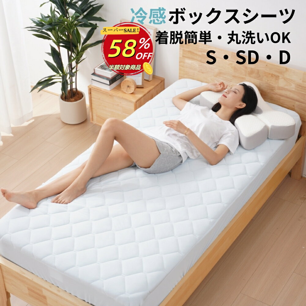 【楽天スーパーSALE 58%OFF】ボックスシーツ シングル 冷感 セミダブル ダブル シーツ 接触冷感 夏用 春秋用 ひんやりシーツ 一体型 丸洗いOK 冷感敷きパッド 100〜140cmまでOK よれにくい ワンタッチシーツ 涼感寝具 マットレスカバー全周保護 ズレ防止 ベッドシーツ