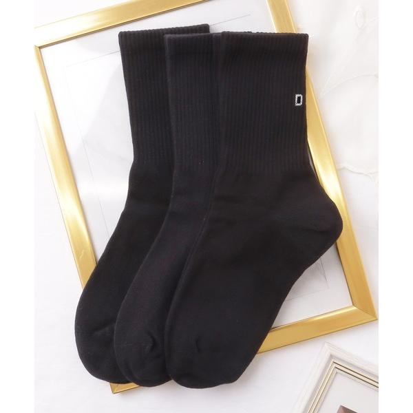 靴下 「3足セット」 ソリッドカラー バック ロゴ リブ クルー ソックス レディース