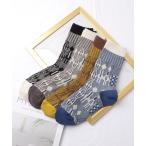靴下 「4足セット」 配色 エスニック柄 バラエティ クルー ソックス レディース
