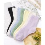 靴下 「5足セット」カラフル ブロック リブ クルー丈 ソックス レディース