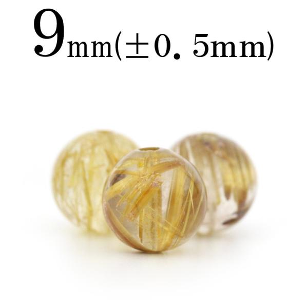1粒売り 天然石 4A級 タイチンルチルクォーツ 丸ビーズ 9mm t686