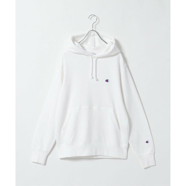 「Champion」 刺繍プルオーバーパーカー M ホワイト メンズ