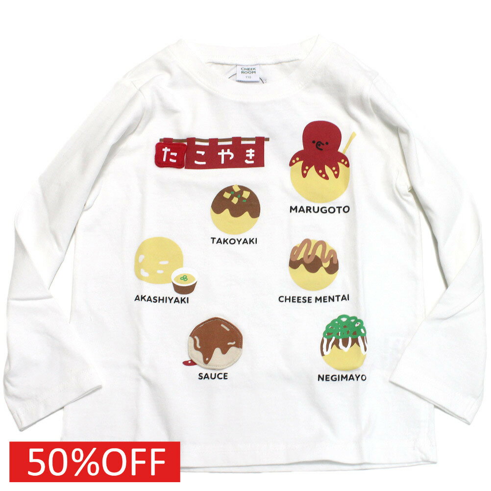 【知育玩具/子供服/ベビー/キッズCHEEK ROOM/チークルーム】 セール 【50%OFF】 たこ焼き ロングTシャツ オフホワイト(OW)