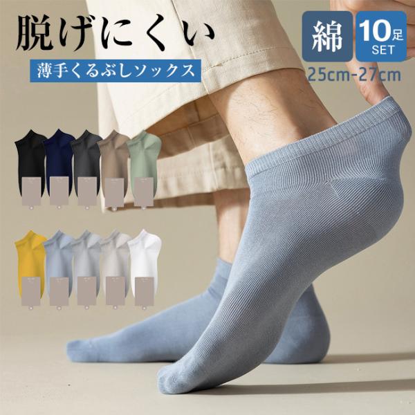 くるぶし 高品質 10足set 靴下 メンズ 夏用 ソックス 靴下 蒸れない 春夏秋冬 シンプル カラフルソックス おしゃれ 綿 クルーソックス 靴下無地