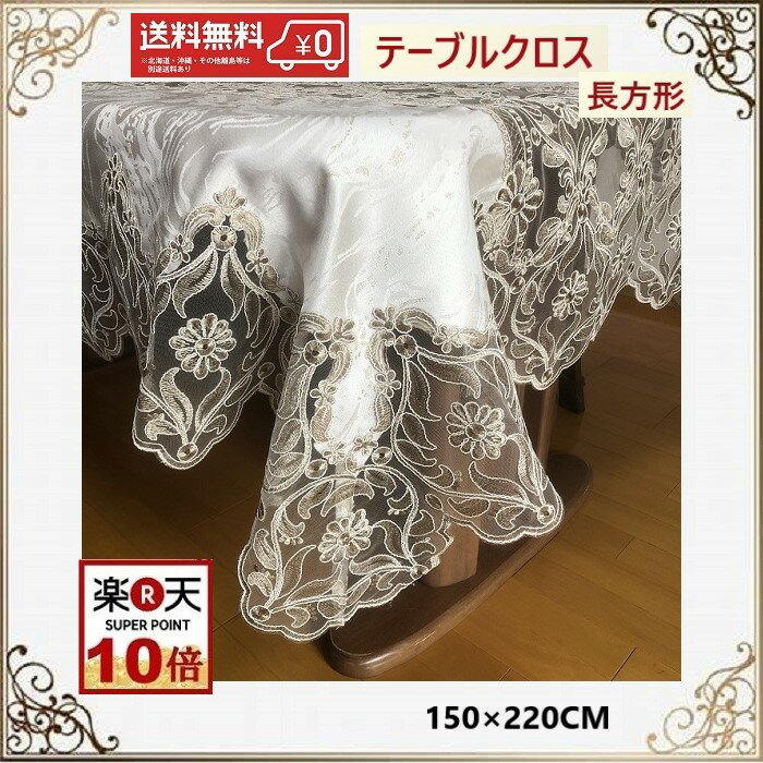 【半額 SALE 50%オフ】テーブルクロス おしゃれ 透明 レース 北欧 布 送料無料 150cm×230cm 長方形 バラ刺繍 白 ホワイト 6人掛け 洗濯可 景品 プレゼント ギフト