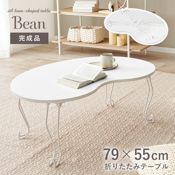 【50%OFFクーポンあり★4日20時〜先着2名】折りたたみビーンズテーブル 79×55cm【Bean】ビーン(完成品 テーブル 折りたたみ 一人用 二人用 折りたたみテーブル 軽い 折り畳みテーブル 小さい センターテーブル おしゃれ ローテーブル 白 丸 折れ脚 可愛い シンプル 姫系 姫