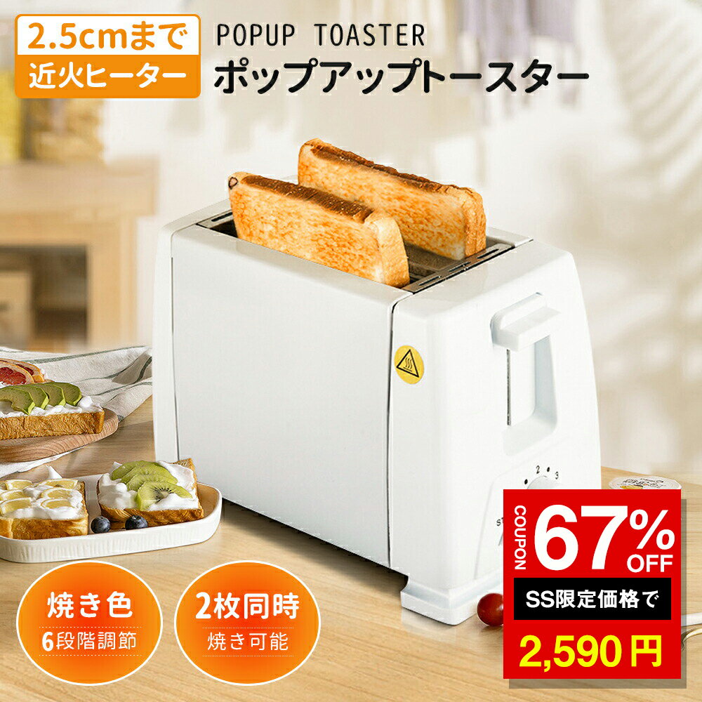 \SS激安 67%OFF→2590円/ポップアップトースター 2枚焼き 焼色調節6段階 5~10枚切り対応 (片面焼き可能/リフト機能) トースター ポップアップ 簡単操作(ホワイト) キッチン家電 調理家電 ポップアップ型トースター