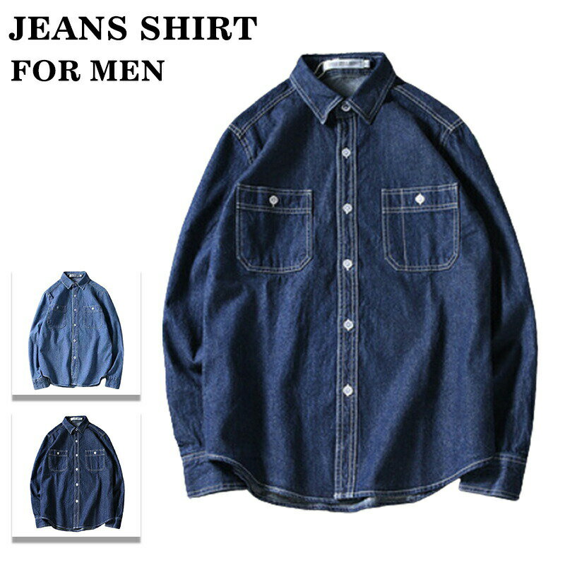 【先着30名様4時間限定50%OFFクーポン配布中】デニム シャツ メンズ 綿100% 長袖 シャツ カジュアルシャツ ウエスタンシャツ デニムシャツ ウエスタンデニムシャツ ワークシャツ 無地 配色ステッチ 春 春服 春物 秋 秋服 秋物
